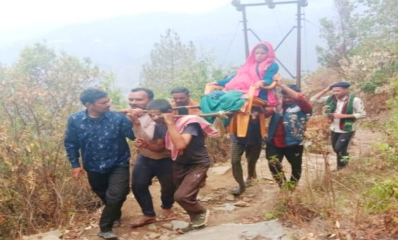 दरअसल, पूरा मामला लोहाघाट के बाराकोट ब्लॉक के दूरस्थ सील गांव का है। जहां सील गांव के गोविंद सिंह की पत्नी कमला देवी को प्रसव पीड़ा हुई। जिसके बाद परिजनों ने ग्रामीणों को इकट्ठा किया और कमला देवी को अस्पताल पहुंचाने का फैसला लिया। ऐसे में कमला देवी को डोली पर बैठाकर ग्रामीण अस्पताल की तरफ निकल गए। 8 किलोमीटर की खड़ी चढ़ाई और खतरनाक रास्तों से होकर महिला को सड़क मार्ग तक पहुंचाया। जहां से उसे एंबुलेंस में बिठाया गया।